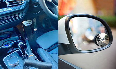 教習でも使用している補助ブレーキとミラーを貸し出し可能です。